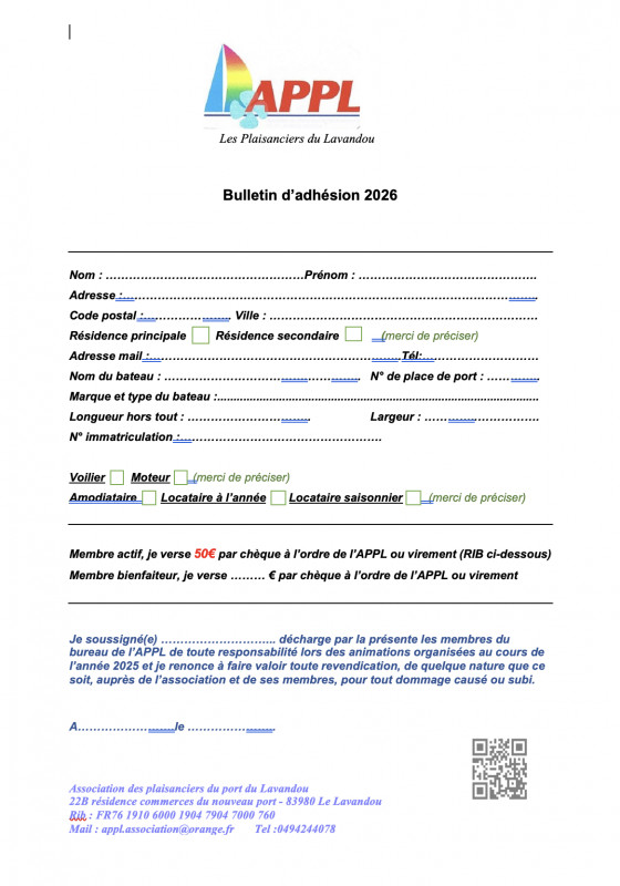 bulletin adhésion 2026