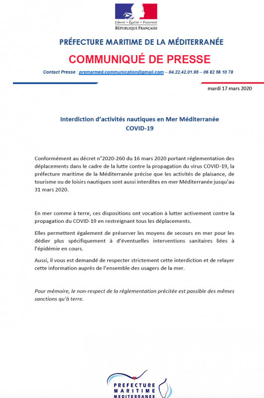 COVID-19, nautisme loisir interdit