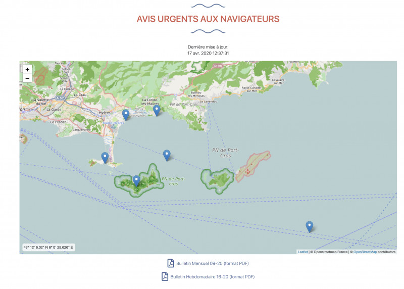 Pour suivre l'actualité sur la perspective d'un déconfinement, connectez-vous sur le site de la Préfecture Maritime où vous retrouverez le point sur les conditions d'application de l'arrêté du 24 avril, les travaux en cours sur la préparation du déconfinement et, toujours utile, une carte interactive des AVURNAV en vigueur (cliquez sur la carte ci-dessous).